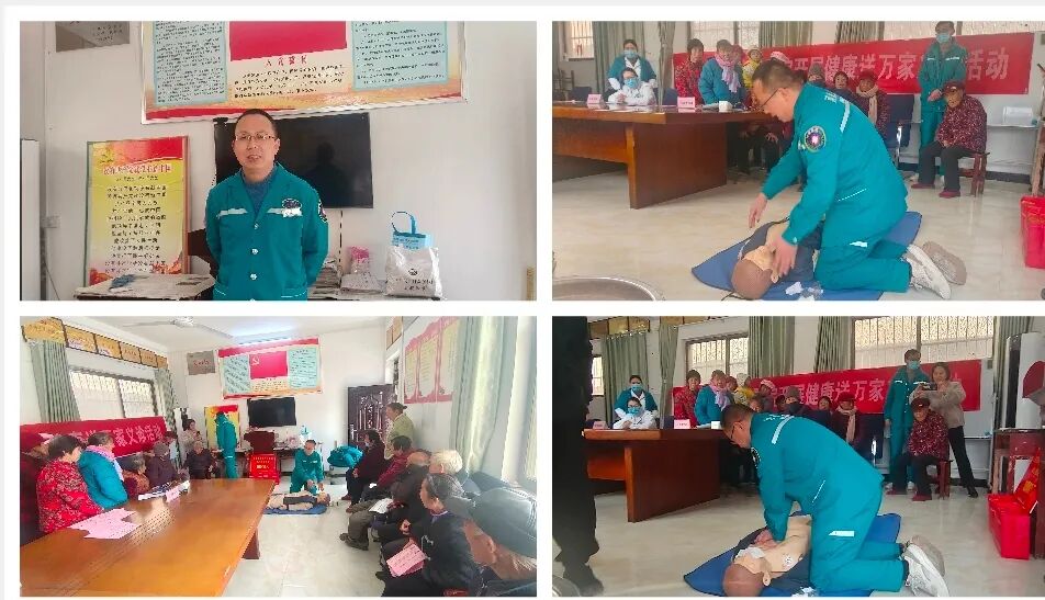 此外,急诊科主任亢新克还现场开展了一堂生动的急救技能培训。通过模拟演示单人心肺复苏的操作流程,并讲解关键急救知识,提升了村民在突发事件中的自救互救能力。